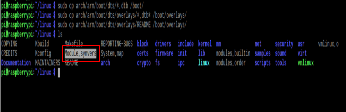 sudo cp arch/arm/boot/dts/overlays/README /boot/overlays/